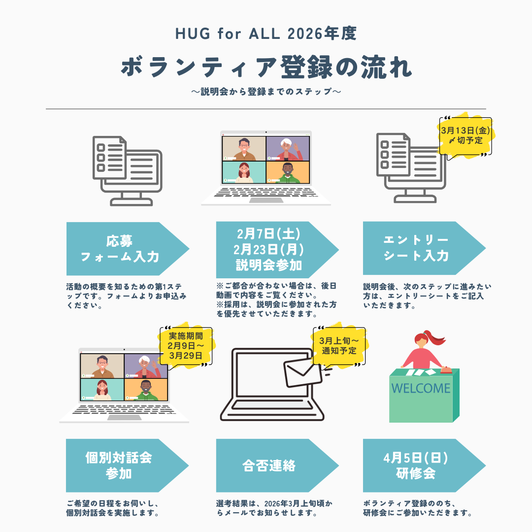 - ボランティア登録 :登録完了後、活動の詳細をご案内